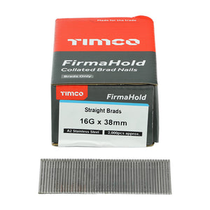 Collated Brad Nails without Gas - 16 Gauge - Straight - Stainless Steel - 2000pcs